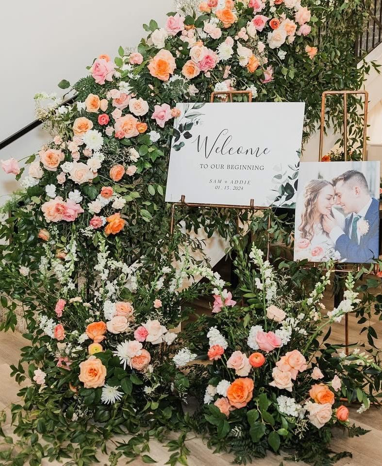 Our style is inspired by nature and a whimsical garden design with varied shapes and textures. We use a variety of layered premium flowers that give a sense of understated elegance that supports the price. If you have any other questions feel free to contact us.